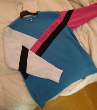 Un autentico pezzo d'epoca firmato Umbro, questa felpa anni '90 incarna lo spirito audace e colorato della moda sportiva di quel decennio. Il design color block con tonalità vivaci come teal, rosa e bianco, abbinato al logo diagonale, la rende un capo distintivo e ricercato. Realizzata in morbido misto cotone e poliestere, è perfetta per chi ama lo stile rétro con un tocco urbano. Tg M, vestibilità regolare. lo sono alto 1,75 x 70 kg Regolatevi in base alle misure che sto per darvi. Misura spalle 50, lunghezza felpa 60, misura ascelle 50, lunghezza maniche 45.