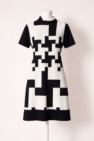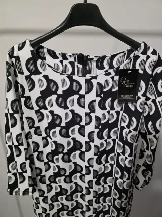 Abito donna fantasia geometrica bianco/nero tg uni