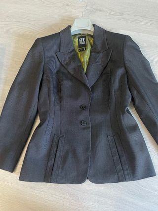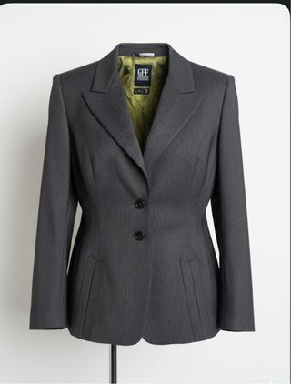 Elegante blazer in lana vergine firmato Gianfranco Ferré. - Tessuto: Lana vergine - Colore: Grigio - Fodera interna color verde - Chiusura a due bottoni - Tasche frontali particolari,petto 49,lunghezza 68