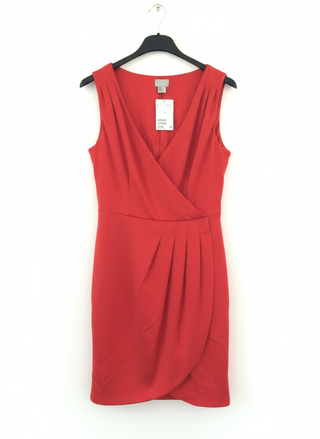 Abito rosso sartoriale, modello Tulipano, H&M – Taglia 42 (M) Per la stagione Autunno/Inverno 2025/26, il rosso sarà di tendenza in tutte le sue sfumature, saranno protagonisti di cappotti, accessori Elegante e femminile, questo abito rosso firmato H&M è perfetto per affrontare con stile tutta la stagione autunno/inverno. Il modello è senza maniche, foderato, con scollo a V incrociato che valorizza il décolleté e dona un tocco sofisticato. Il taglio in vita sottolinea la silhouette, mentre la gonna effetto portafoglio con orlo a tulipano aggiunge movimento e raffinatezza. 📏 Misure: • Seno: 45 cm • Fianchi: 45 cm • Vita: 3