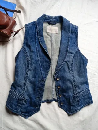 Gilet in denim firmato Esprit. Un capo versatile e alla moda. - Chiusura con bottoni. - Scollo a V con revers. - Tasche frontali con patta.