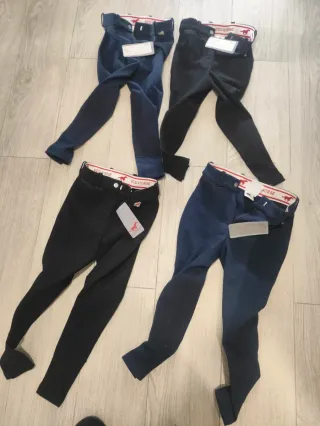 Pantaloncini da equitazione per bambini della marca Red Horse. Colore blu e nero. Cintura con logo del marchio. Sono 4 pantaloncini, 2 taglia 8 e 10, ciascuno in blu e nero ha una taglia ciascuno. 128NL o 140NL = taglia 8 o 10 rispettivamente. Ogni pantaloncino costa 15€, se ne acquisti più di uno in confezione il prezzo si abbassa.