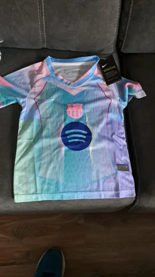 Set sportivo del FC Barcelona per bambini, con un design vibrante e moderno. - Maglietta con scollo a V e dettagli grafici. - Pantaloncini con cintura elastica. - Stemma del club e logo Nike. - Tessuto traspirante. Taglia per bambini da 2 a 3 anni.