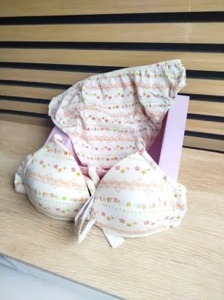 Set di biancheria intima per bambini composto da reggiseno regolabile, taglia T85 B, e mutandine, nuovo in scatola. Non è bianco, ma piuttosto madreperla o bianco sporco.