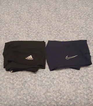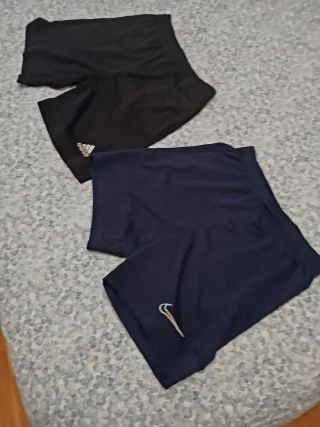 Set di due pantaloni sportivi per bambini, ideali per il calcio. - Un pantalone di colore nero con logo Adidas. - Un pantalone di colore blu marino con logo Nike.