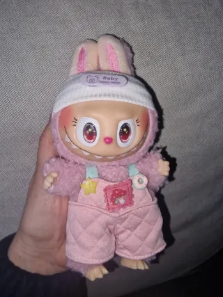 Questo adorabile Labubu viene con un set di abbigliamento. - Portachiavi con design di coniglietto. - Abbigliamento per neonati con dettagli. - Patch di seta sull'abbigliamento. È in perfette condizioni, è stato solo in una vetrina da collezione, lo vendo con l'abbigliamento incluso.