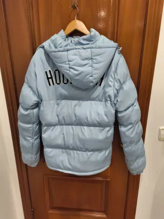 Giubbotto imbottito con cappuccio. Presenta alcuni segni, visibili nelle foto, altrimenti perfetto. Chiusura con cerniera. Tasche laterali. Logo del marchio sul petto.