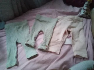 Consegna di abbigliamento per neonati dai 3 ai 6 mesi. Include una varietà di capi comodi e adorabili. - Varietà di body, magliette, giacche e pigiami. - Capi con stampe infantili. - Piumino in pile. Prezzo tutto 70€. Prezzo per pack negoziabili. Scarpe marroni (taglia 18) e Adidas (taglia 19) separatamente 15€ ciascuna.