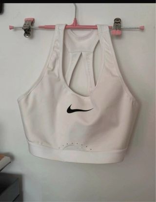 Top sportivo del marchio Nike in bianco. Design comodo e moderno. Logo Nike a contrasto. Spalline incrociate sulla schiena.