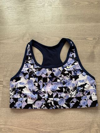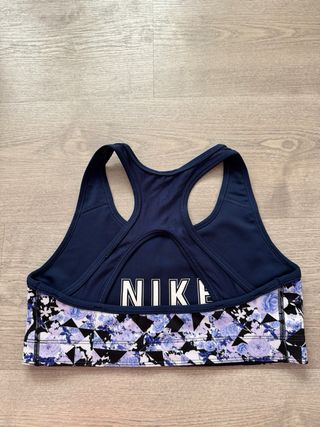 Top sportivo del marchio Nike, ideale per attività fisiche. Taglia M. Colore blu.