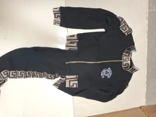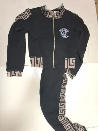 Set sportivo da donna in due pezzi. - Giacca con cerniera frontale. - Pantaloni abbinati. - Design con dettagli a greca. - Logo Versace ricamato sulla giacca.
