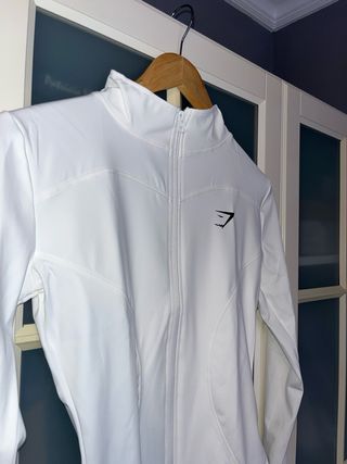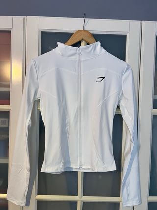 Giubbotto sportivo del marchio GymShark. - Praticamente nuovo - Design moderno e funzionale. - Cerniera frontale completa. - Cuciture dettagliate per un taglio favorevole. - L'etichetta interna è stata tagliata perché creava fastidio durante l'uso.