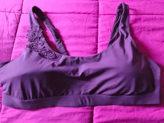 Reggiseno sportivo con un design delicato negli spallacci. Dettaglio floreale in pizzo nello spalaccio sinistro. Spallacci larghi per una maggiore comodità. Banda inferiore elastica.