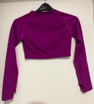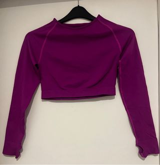 Top sportivo a manica lunga con un design moderno. - Maniche lunghe con aperture per i pollici. - Tessuto elastico e traspirante. - Taglio cropped.