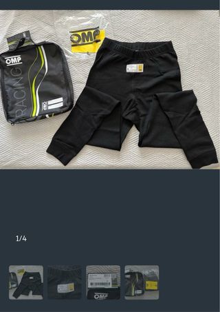 Set di abbigliamento sportivo OMP. - Maglietta a maniche lunghe. - Pantaloni. - Omologazione FIA.