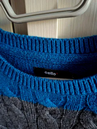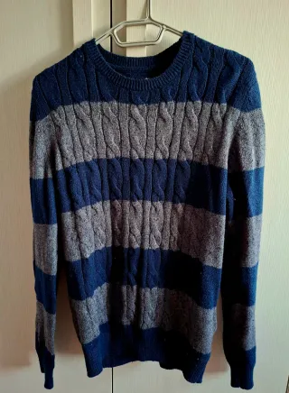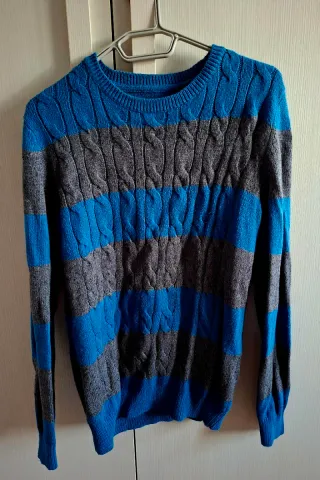 Maglione girocollo blu e grigio taglia L