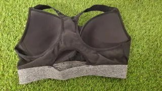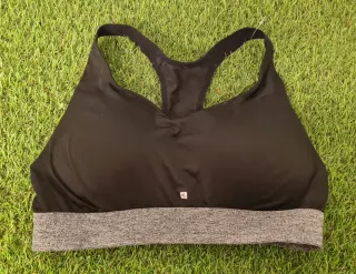 Reggiseno sportivo Domyos di colore nero, ideale per l'attività fisica. Circonferenza torace 70 cm taglia quarta - Tessuto traspirante. - Fascia elastica sotto il seno. - Spalline incrociate sulla schiena.