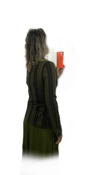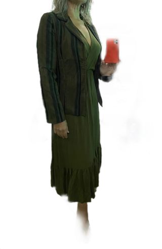 Giacca originale Reds Made in Italy. Verde scuro, strisce nere (alcune in vellutino) e fili arancio-marrone-rame; introvabile. Elegante e sportivo; Capo jolly abbinabile a tutto! Tessuto elastico (2% elastan). spalle 40 cm, lunghezza 41 cm, torace 47,5 cm, vita 43,5 cm. Chiusura interna con bottoni. Taglia S, 40/: