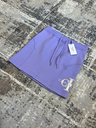 Minigonna Calvin Klein in un vivace colore viola. Presenta un design sportivo con coulisse in vita e logo applicato. - Coulisse regolabile in vita - Logo Calvin Klein sul fondo - Tasche laterali