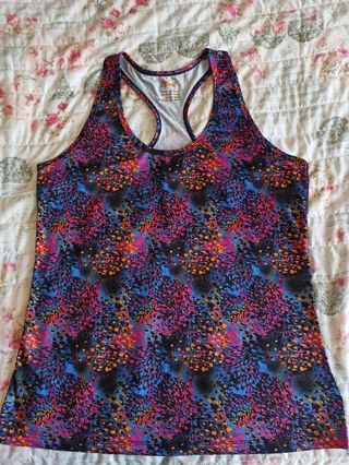 Top sportivo dai bellissimi colori, mai usato, taglia M. Veste molto morbido, quindi potrebbe andar bene anche per una L se lo si vuole meno largo. ⚠️Prezzo non trattabile.