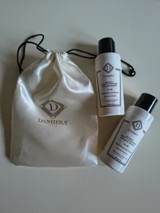 ⚠️ Armadio in vacanza! Prodotto al momento non disponibile. Potrò vendere nuovamente dai primi giorni di gennaio. Set di due flaconi di detergente per capi sportivi Danhera più sacchetto pochette in raso. - Detergente specifico per abbigliamento sportivo. - Formula con deodorante integrato. - Ogni flacone contiene 100 ml (3,4 fl.oz). - Efficacia e cura naturale.