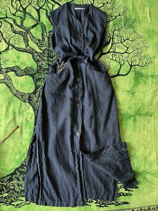 Bellissimo abito lungo vintage, in perfetto stato. - Colore blu intenso - Realizzato in lino - Vestibilità comoda - Chiusura con bottoni Vestito estivo lungo smanicato Colore blu notte Fantasia a quadri scozzese tono su tono Chiusura frontale con bottoni Spacchi laterali Con tasche 100% lino Taglia M asciutta #tartan #cottage #cottagecore #cottagestyle #cottagelolita #cottagelove
