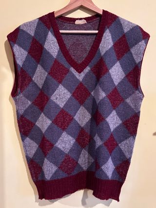 Gilet in lana con classico motivo a rombi. - Scollo a V. - Senza maniche. - Orlo a costine