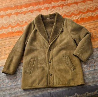 Un classico montone scamosciato dal fascino vintage madre in Italy taglia 56 - Materiale esterno in pelle scamosciata. - Fodera interna in calda pelliccia sintetica. - Collo ampio e morbido. - Chiusura con bottoni. - Tasche laterali applicate.