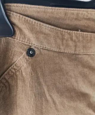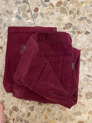 Pantaloni da donna a coste, 100% cotone, con una tonalità bordeaux profonda. - Tessuto a costine. - Vita alta. - Gamba dritta. Misure: Etichetta 48 ma essendo taglia vintage corrisponde a una M donna. Cintura: 76cm Caviglia: 43cm Lunghezza pantalone: 102cm Cavallo (lunghezza interno gamba): 72cm