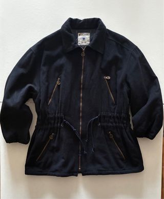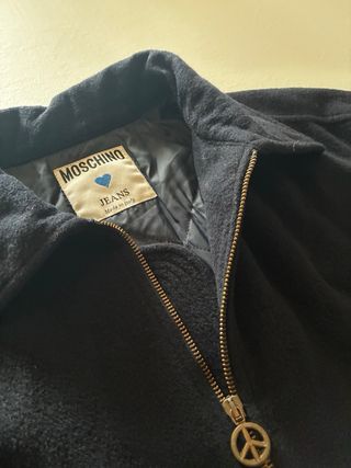 Bellissimo giubbotto Moschino vintage da donna. Giubbotto donna vintage Moschino, in lana e con imbottitura interna. Stato come nuovo, unico difetto quasi invisibile nella parte finale della cerniera. L (per qualsiasi informazione non esitate a chiedere). La giacca è lavata, rigenerata e verificata. Verrà inviata in 24/48h in apposito imballaggio. Per 2 articoli proponiamo: 15% di sconto 3 articoli: 20% di sconto 5 o più: 25% di sconto Parole chiave: university université universidad univers - Chiusura con zip. - Coulisse in vita per regolare la vestibilità. - Tasche con zip frontali. - Dettagli con simbolo della pace.