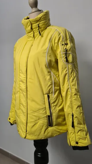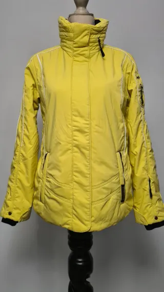 Giubbino da neve molto bello nella sua colorazione giallo paglierino ma soprattutto nella composizione dei maretiali. Ha quel tocco vintage ma nello stesso tempo mantiene sempre la sua eleganza e la sua modernità nelle linee. Taglia: 38 EU - 42 IT Misure: Spalle non sagomate Ascella ad ascella 49 cm Lunghezza giubbino 66 cm Resistente all'acqua, traspirante, antivento, taschino skipass, polsini e ghetta integrata e cappuccio integrato nel colletto estraibile tramite zip.