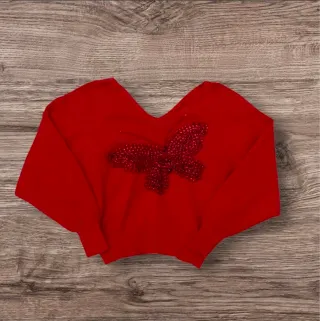 Pullover donna rosso farfalla paillettes M
