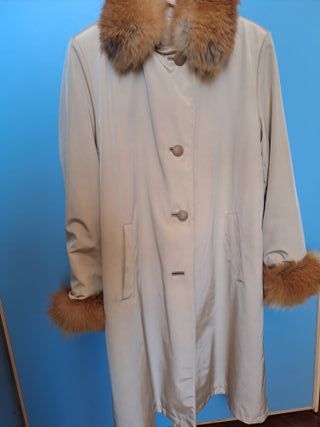 Elegante trench vintage da donna, perfetto per completare il tuo look. - Dettagli in pelliccia su collo e polsini. - Chiusura con bottoni. - Tasche frontali. - Fodera interna.