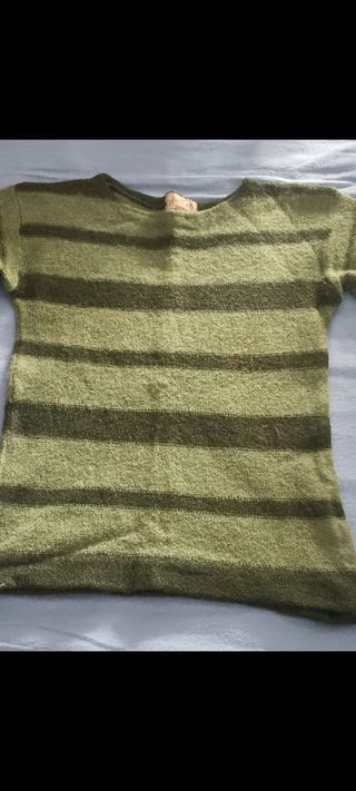 Maglioncino lana alpaca verde righe donna XS 38