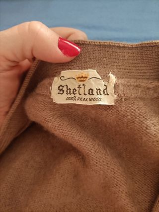 Cardigan lana beige Shetland unisex uomo donna M