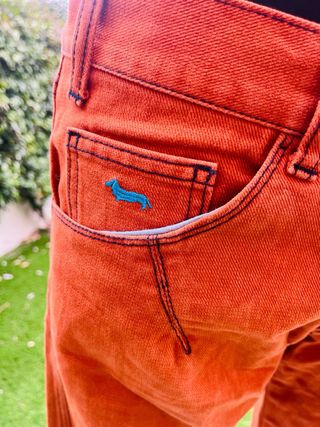 Pantalone da uomo Harmount & Blaine, un pezzo unico dal fascino vintage. - Colore arancione intenso. - Design classico e versatile. - Materiale resistente e confortevole.