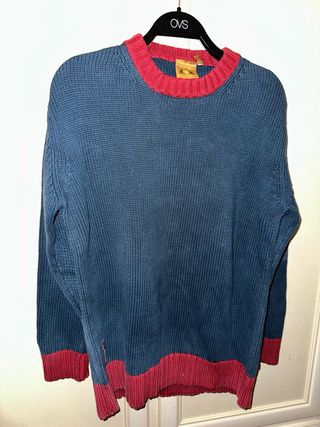 Maglione Uomo Vintage Cotone Blu/Rosso