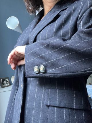 Bellissimo blazer vintage a righe, perfetto per un look elegante e senza tempo. - Tessuto in lana - Chiusura con bottone singolo - Modello classico