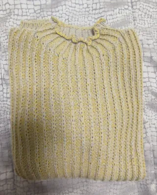 Maglione vintage con un bel design a coste e collo medio arricciato. Il filato misto grigio e giallo crea un effetto mélange unico. - Collo medio arricciato - Maniche lunghe - Trama a coste - Effetto mélange - Lana e cotone