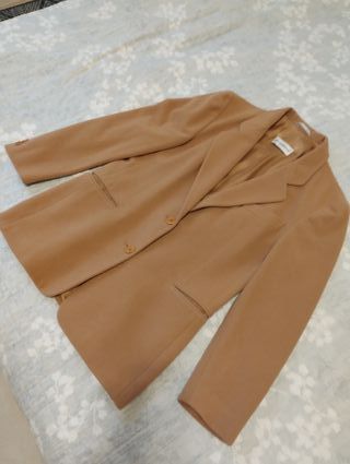 Giacca in lana color cammello, foderata. Ottime condizioni eccetto dei punti (piccoli) sul retro dove la lana è più corta. Larghezza spalle 42/43 cm, larghezza sotto le ascelle 48 cm - Materiale: lana - Colore: beige/marrone - Stile: vintage