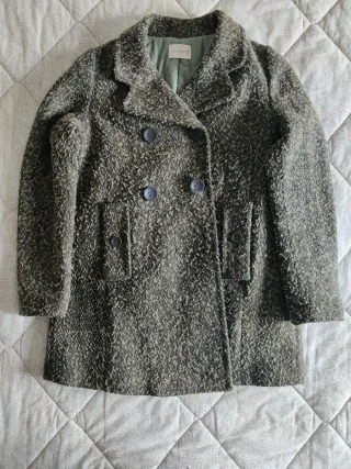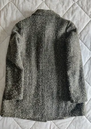 Cappotto vintage in lana, perfetto per un look unico e avvolgente. Ideale per l'inverno. - Tessuto misto lana con fili rossi. - Chiusura con bottoni. - Tasche frontali applicate. - Collo ampio. Come nuovo.