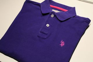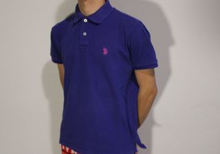 (prezzo trattabile) Polo blu/indaco 100% cotone con dettagli del logo e cuciture interne rosa, vintage, in ottime condizioni