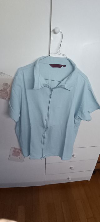 Maglietta a maniche corte con zip frontale e colletto. - Tessuto in Cotone leggero e confortevole. - Design casual e versatile. - Tessuto in cotone morbido e traspirante. - Spacchetti laterali