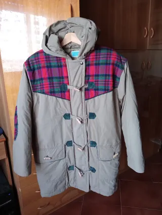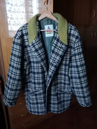 Giaccone invernale in tessuto caldo: 70 lana 25 nylon). Interno foderato in viscosa. Colletto sciallato in maglia a coste colore senape. Motivo a quadretti scozzese blu, azzurro e bianco. Condizioni esterne ottime. Difetti: la fodera interna presenta vari strappi; probabilmente manca il cappuccio. Taglia M. Made in Italy. Prestige. - spalle 56 cm - petto 64 cm - lunghezza (centro schiena) 80 cm - manica 55 cm