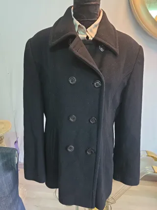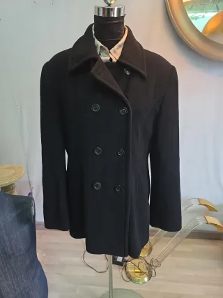 Cappotto corto double face. Lato A 70 lana 30 nylon / Lato B 100% cotone. Colore blu molto scuro. Chiusura a zip e bottone, con tasche ambo i lati. Condizioni eccellenti. Attenzione: la manica era stata accorciata con una cucitura delicata ma è stata ripristinata alla lunghezza originale. Potrebbe presentare lievissimi segni. Taglia S ma veste over: nella foto indossato da me: 185cm X 87kg. Made in Italy. - spalle 52 cm - petto 58 cm - lunghezza (centro schiena) 78/79 cm - manica 62 cm