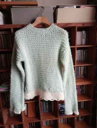 Pullover a maglia larga in lana. Colore tiffany chiaro. Condizioni eccellenti. Taglia S slim o XS. - spalle 46 cm - petto 40 cm - lunghezza (centro schiena) 56 cm - manica 62 cm