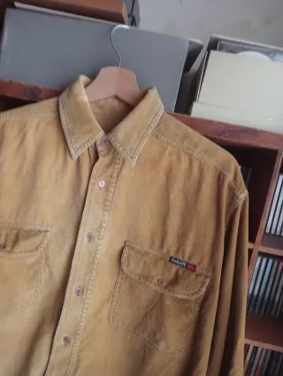 Camicia maniche lunghe in velluto a costine (100% cotone). Abbastanza usata ma in condizioni molto buone. Difetti: usura interna al colletto e colore un po' sfasato. Taglia M. Made in Italy.