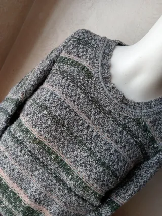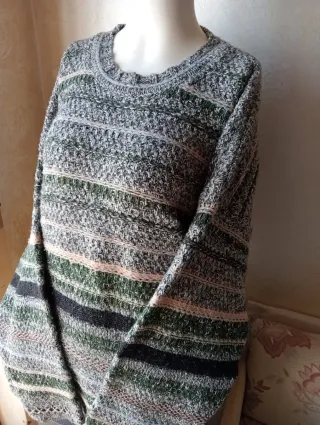 Maglione girocollo in tessuto misto lana 45 cotone 10 acrilico 45. Melange di colori e lavorazione del tessuto di alta qualità. Ottime condizioni. Taglia M oversize, per cui seleziono XL (o anche più), verificare misure in centimetri. Made in Italy. - spalle 72 cm - petto 64 cm - lunghezza (centro schiena) 72 cm - manica 52 cm
