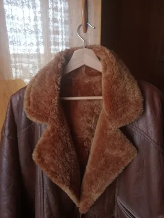 Giubbotto in pelle con imbottitura in vera lana shearling. Periodo anni 80. Il capo è stato vissuto ma si mantiene in condizioni ottime all'esterno ed eccellenti nella pelliccetta interna ancora pulitissima e senza odori. Unico lieve difetto visibile nelle ultime due foto, facilmente risolvibile con crema per pelli marrone. La taglia è una 46 ma la vestibilità è da M internazionale. Made in Italy. Modello North Dakota by Jacques La Font. - spalle 62 cm - petto 64 cm - lunghezza (centro schiena) 78 cm - manica 57 cm