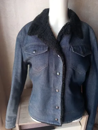 Giacca in denim con rivestimento interno in pelliccia sintetica. Condizioni ge ralieccellenti. unico difetto: scucitura sotto ascella, facilmente riparabile (vedi ultime foto). Taglia S/M. Made in Italy. Brevetti - spalle 46 cm - petto 54 cm - lunghezza (centro schiena) 53 cm - manica 61 cm